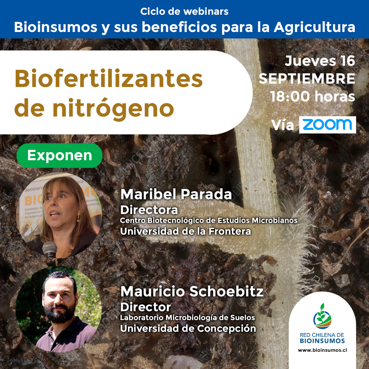 En el Ciclo de Webinars “Bioinsumos y sus beneficios para la agricultura“, estaremos invitando a científicos y técnicos que desde su experiencia van a compartir conocimientos clave para comprender cómo, a través de un camino distinto en el manejo de plagas y de la fertilidad agrícola, es posible contribuir a una agricultura más sustentable para Chile.
